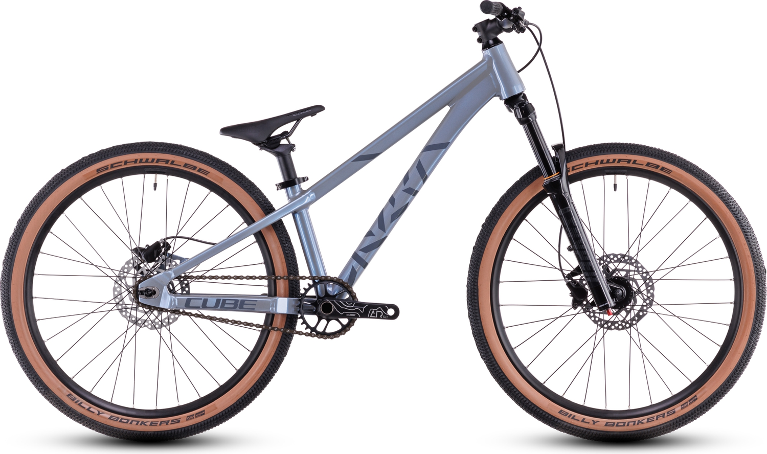 Dieses Gefühl, seinen ersten richtigen Sprung souverän zu landen – einfach unbezahlbar! Der Geometrie des Flying Circus 240 sei Dank ist dieses Gefühl für Youngsters zum Greifen nah, denn sie ist konsequent auf den Einsatz ohne Bodenkontakt ausgelegt. Dazu halten die RST Snyper Luftfedergabel und stabilen CUBE Laufräder mit Billy Bonkers Pneus von Schwalbe selbst dann die Stellung, wenn mal was schiefgeht. Ebenso mit dabei sind kräftig zupackende hydraulische Scheibenbremsen und ein unkomplizierter Singlespeed-Antrieb. Fazit: Das perfekte Set-up für Nachwuchs-Ripper, die auf dem Pumptrack oder Trail richtig Gas geben und Eindruck schinden wollen.