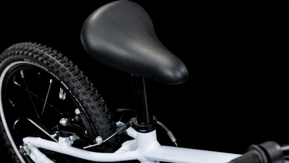Für Kids ist das Radfahren erlernen ein wichtiger Schritt hin zu mehr Unabhängigkeit – und mit einem leichten Bike wie dem Numove 140 gelingt dieser Schritt optimal. Sein speziell konstruierter Rahmen samt passender Gabel wurde im Hinblick auf wenig Gewicht konzipiert. Bestückt haben wir ihn mit ebenso leichten wie robusten Komponenten, zum Beispiel einem CUBE Vorbau und Thun Tretlager (made in Germany). Auf die leichten Laufräder haben wir schmale Reifen aufgezogen. Die einfach zu bedienenden V-Brakes vorne und hinten haben kindgerechte Hebel und Griffe, damit kleine Hände sie optimal greifen können. Und weil auch das Thema Sicherheit nicht zu kurz kommen darf, sind alle Kanten abgerundet und die Kette ist komplett abgedeckt. Gut zu wissen: Trotz seines geringen Gewichts hält dieses Bike sämtlichen Beanspruchungen bei ersten Fahrversuchen oder auch gewagteren Manövern problemlos stand.