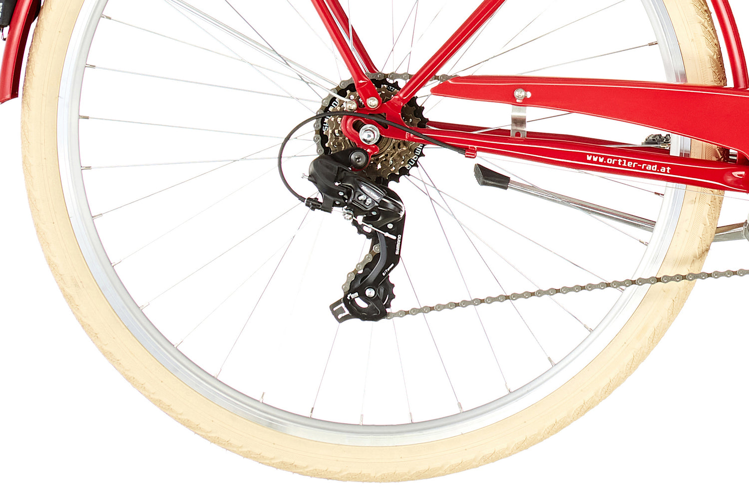 Die Lichtanlage im Retrostyle ist selbstverständlich StVZO-zugelassen, Schutzbleche und Kettenschutz in der Rahmenfarbe runden das Rad in Sachen Stil und Komplettausstattung ab. Durch den tiefen Einstieg und den großen Verstellbereich von Lenker und Sattel sind Fahrer*innen zwischen 1,55 und 1,85 Metern komfortabel unterwegs mit der Ortler Detroit EQ Unisize-Rahmengröße.