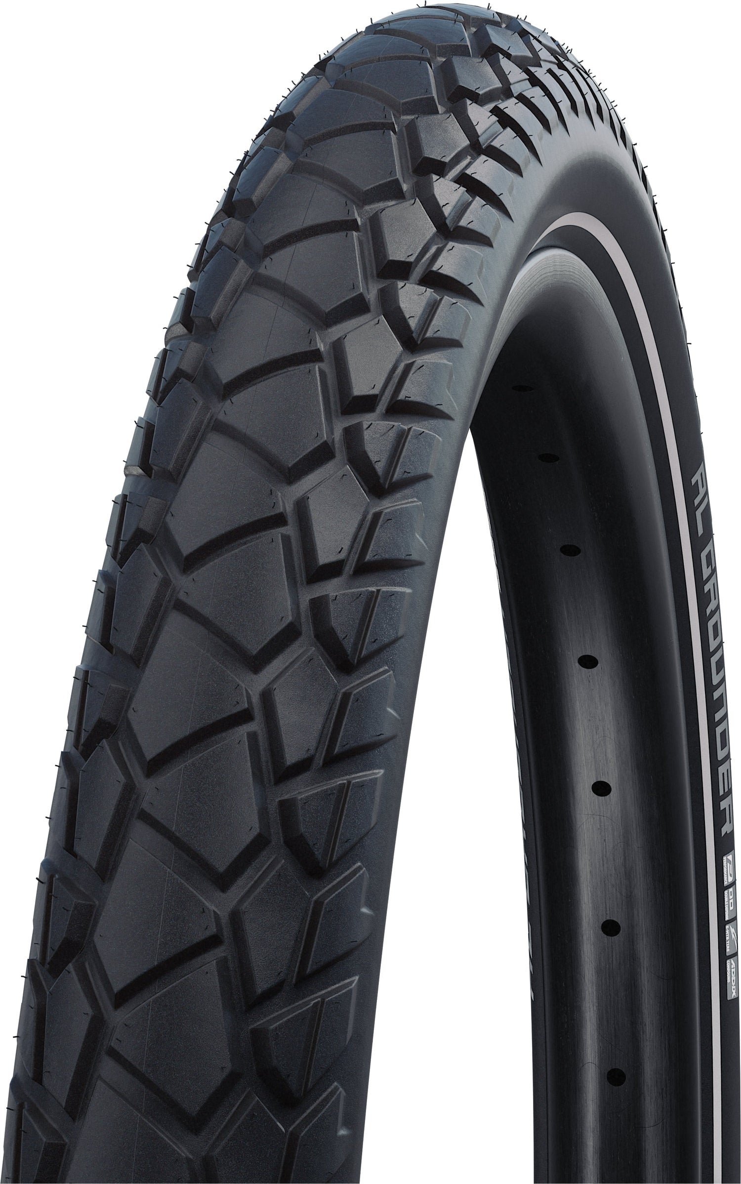 Der neue Crossover Reifen für E-SUV und Touring Bikes bietet echte Allround Fähigkeiten für den Einsatz auf Straßen, Feldwegen und leichtem Gelände. Mit seinem einzigarten Profil Design läuft er leise und schnell auf Asphalt und bietet gleichzeitig ausreichend Stabilität auf unbefestigtem Untergrund. Ausgestattet mit der DOUBLE DEFENSE Konstruktion und Addix Compound erreicht Al Grounder einen hohe Pannensicherheit und eine optimale Balance zwischen geringem Rollwiderstand und ausreichend Grip.