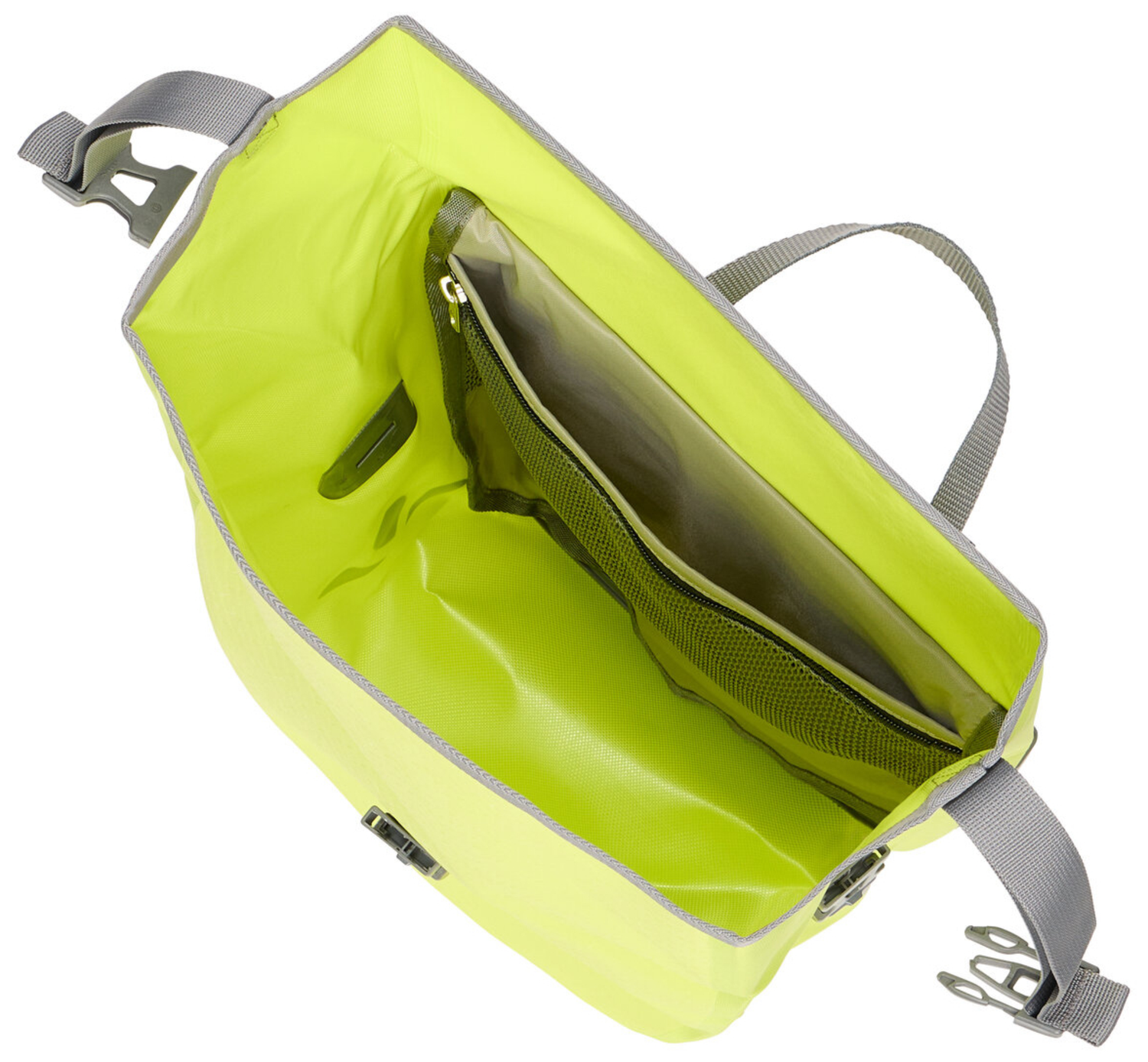 Auf in die große, weite Welt! Die wasserdichten Vorderradtaschen werden aus robustem, PVC-freiem Planenmaterial am deutschen VAUDE-Standort in der Nähe des Bodensees hergestellt und würden gerne mit Dir auf große Reisen gehen. Sie lassen sich durch den Wickelverschluss auf individuelle Größen bringen und absolut dicht verschließen. Für Übersichtlichkeit sorgt eine extra Innentasche. Die Taschen werden mit dem QMR 2.0-System und stabiler Rückenplatte rechts und links am Gepäckträger befestigt, sind über einfach bedienbare Handrädchen justierbar und lassen sich schnell und einfach abnehmen. Diese Vorderradtaschen können genauso gut als Hinterradtaschen verwendet werden. Mit einem Fahrradschloss können sie direkt am QMR-Haken verriegelt werden. Mit Reflexelementen. Lieferumfang: zwei Taschen (Paar). Das Gesamtvolumen beider Taschen beträgt 28 Liter.