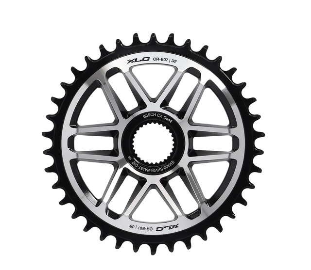 Das XLC Direct Mount Kettenblatt CR-E07 ist speziell für E-Mountainbikes mit 12-fach Bosch Antrieben der vierten Generation geeignet. Es ist mit 36 oder 38 Zähnen erhältlich. Das Kettenblatt ist CNC gefräst und besteht aus Aluminium.